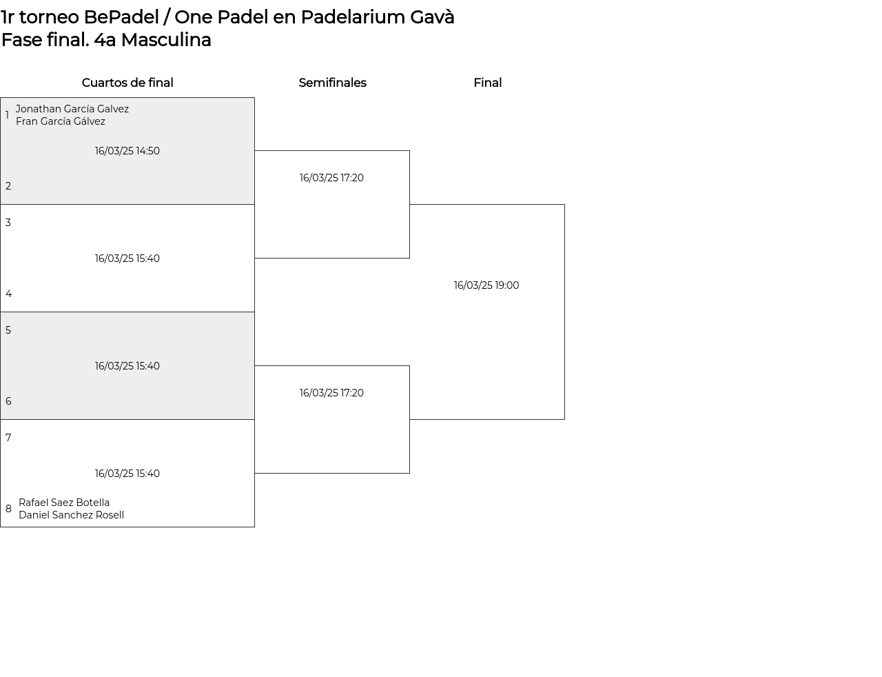 4a Masculina . Desde 16/03/2025 10:00 hasta 16/03/2025 21:00